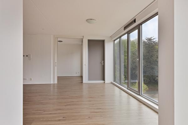 Bij binnenkomst via de gemeenschappelijke hal op de begane grond, tref je een intercomsysteem en toegang tot zowel de trapopgang als de lift. Het appartement is gelegen op de derde verdieping, wat zorgt voor een fraai uitzicht en veel natuurlijk licht.
