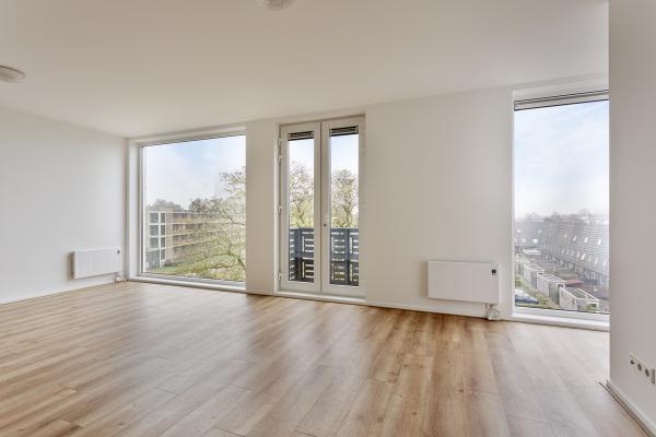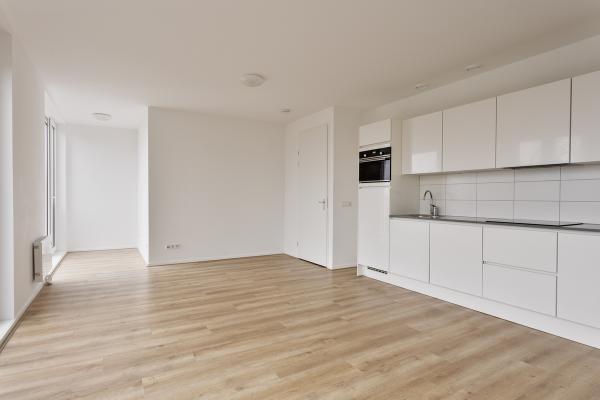 Gelegen op de 3e verdieping, entree in hal met toegang tot aparte berging met de technische installaties en de aansluiting voor de wasmachine. Tevens is de lichte woonkamer (ca. 32m²) met open keuken bereikbaar via de hal. De woonkamer beschikt over hoge raampartijen en een frans balkon waardoor deze veel lichtinval geniet. De moderne open keuken is voorzien van een inductiekookplaat, combi-oven, koelkast met vriesvak, vaatwasser, afzuigkap, koolstoffilter en voldoende bergruimte. Via de hal vanuit de woonkamer zijn zowel de badkamer als de slaapkamer (ca. 14m²) toegankelijk. De moderne badkamer beschikt over een vaste wastafel met meubel, designradiator, douche en CO2 ventilatie.
